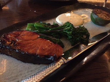 The salmon – this was really tasty. I loved the marinade. For my preference, it would not have been cooked so much, I prefer a little pink in salmon. Plus it comes with midget trees, I love midget trees