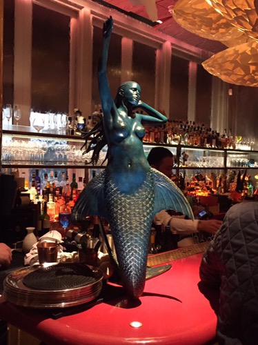 The decor kind of reminds me of an old school gentleman’s club- rich decor bordering on over the top. Damien Hirst (mermaids) and Frank Gehry (crocodile) pieces on display and in the heart of Mayfair, it is the epitome of decadence. Half the patrons looking around to see who else is there, the other half talking about how important they are.