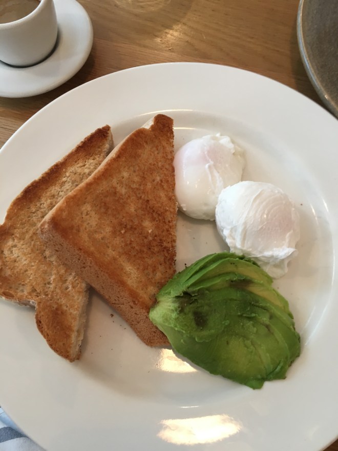 Sadly I was full of cold, feeling sorry for myself and not up to my usual ordering frenzy. I went for plain old poached eggs on what can only be described as ridiculously thick toast with a little avocado and blue cheese mushrooms on the side. The mushrooms could have been a lot cheesier, and that wasn’t just my dead cold taste buds talking, the others agreed.