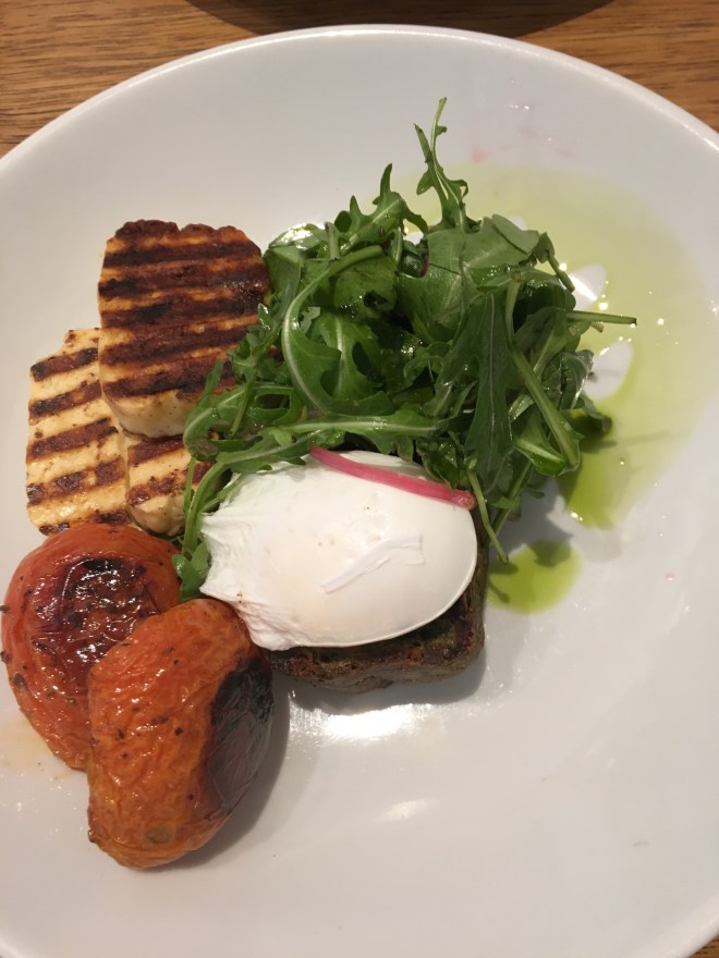 I went for the kale bread, halloumi & poached egg, I’m pretty sure I won best order. The kale bread is beautiful savoury loaf a little like a courgette loaf. Add that to good thick slices of halloumi & poached eggs and it is a great dish. Personally, as a chilli freak, I’d put fresh chilli but I think I’m the only one who always wants it at breakfast. Even my ‘I don’t like kale’ buddy thought it was good, so don’t let that discourage you.