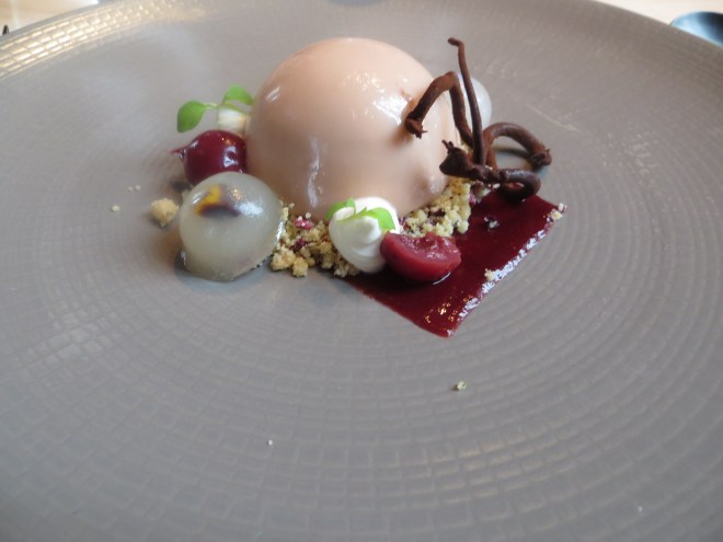 Then along came dessert… Now I am not that big on dessert (I don’t count cake as dessert because I like eating it by itself not with a meal) so don’t tend to order it myself, just taste a bite of someone else’s. But when it come with your meal, you don’t argue 😋 It was a cherry chocolate delice and my God was it divine! I think I ate half of this which is pretty unusual for me. It was basically like a ball of chocolate heaven with em ough cherry to compliment but not over powering it.