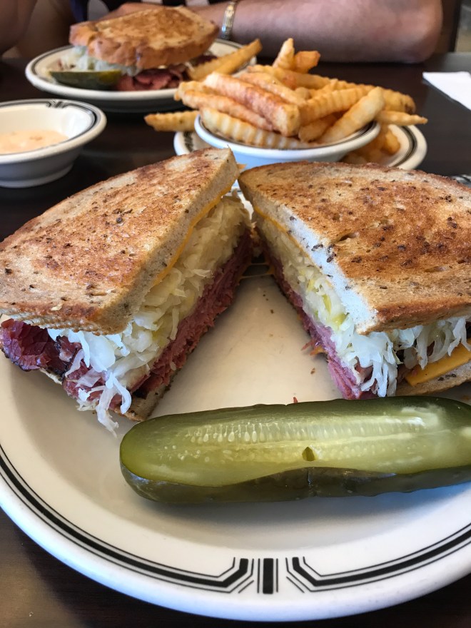 There’s a massive sandwich menu predominantly pastrami & salt beef. We went for one of each to try and a small fries (these turned out to be crinkle cut chips which made me very very happy). The sandwiches are MASSIVE- and at $15.95 they should be.
