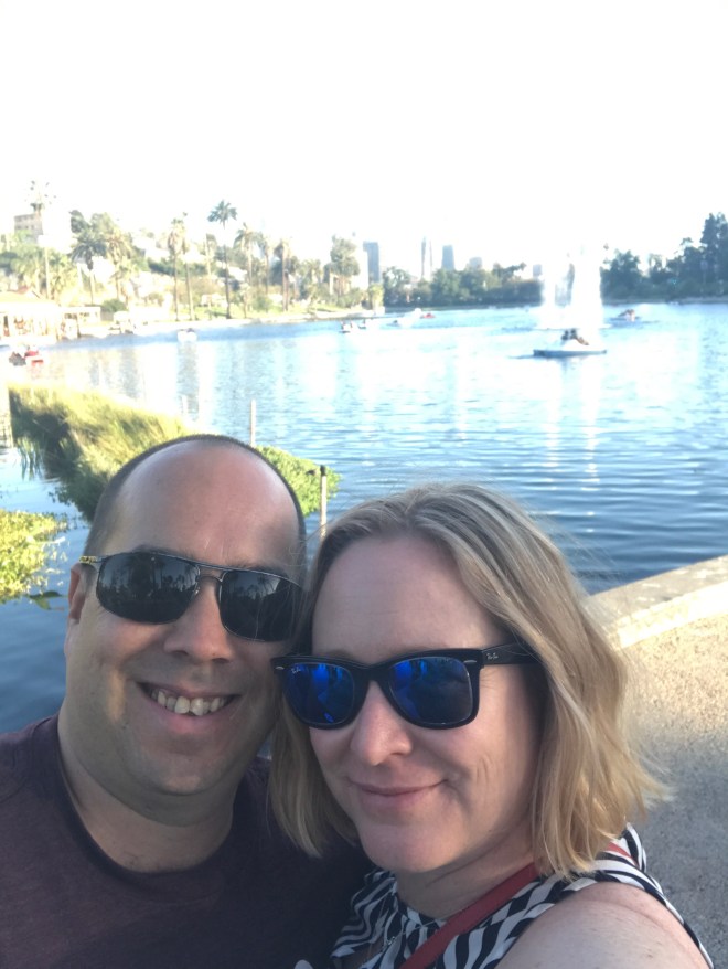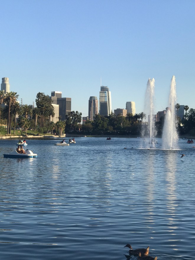 On our walk back home (much nicer route than the one in) we went through Echo Park. This park is really pretty. A big lake with pedlos, people picnicking- all the good stuff.