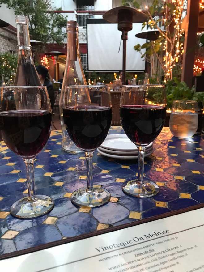 A right turn onto Melrose and I found the cutest wine bar, Vinoteque! I love this place. There is a great little courtyard which has you tucked off the street and the wine list is good! They will do any of their wines by the glass or bottle which is brilliant, but better than that are their wine flights. You simply tell the server your taste and they create you a flight which ends up being about $5 a glass. Brilliant value and you can test a few before deciding what to get by the bottle. Add a charcuterie and cheese plate (there is more on their menu but these are my perfect wine accompaniments) and you pretty much have my idea of heaven.