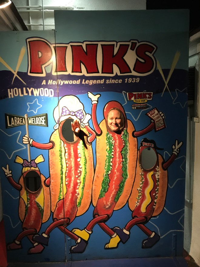 The only logical thing left to do after a mini bar crawl- Pink’s Hotdogs. Pink’s is another LA icon, you don’t want to miss it. There will always be a queue, but it moves fast and it is worth the wait- there’s a reason they’ve been around for 77 years. These are arguably the best dogs in LA, though I probably need to do some more research before making such a sweeping statement π I went for a classic chilli cheese dog with added jalapeΓ±os. Yum, and that was not just the wine talking. There are so many different options to choose from, and it’s now down the road from me so I will be off taste testing more soon.