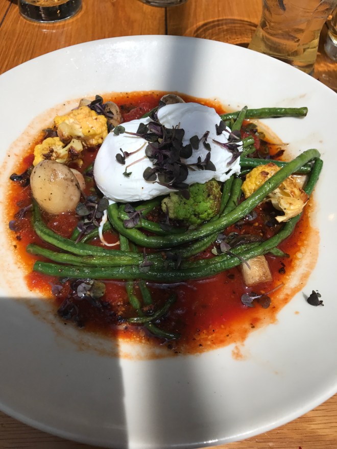 Next up was the egg with market veg, such a great choice. I switched the eggs from fried to poached and added a side of bacon, which wasn’t actually necessary but who cares. The veg were mushrooms, green beans, cauliflower and broccoflower which had been grilled and had the best smokey flavor to them, nicely complimenting the tomato sauce. At first I thought it was missing bread, which could have been good for soaking up the sauce but it turns out I didn’t need it.