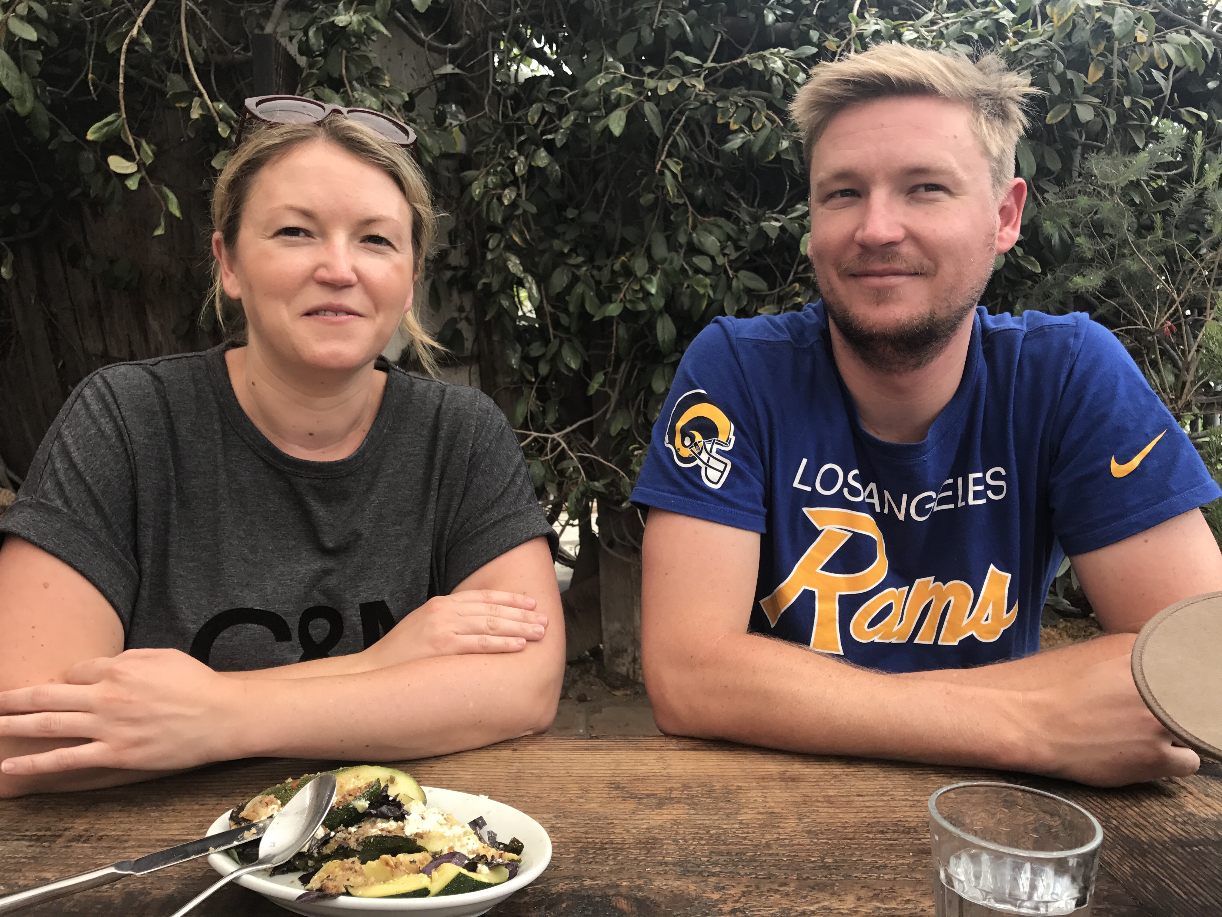 The other place Jax wanted to test while we were out this way was Bondi Harvest. It’s a Sydney style healthy cafe in Santa Monica– but right at the back of Santa Monica, so it’s a few miles on bike out to it. It’s a good route though as there’s a bike path for most of the way. I did think it was funny that we were heading to a Sydney cafe when we were putting Martin on the plane back to Sydney in 5 hours and Jax would be doing the same in a few days but it worked for me, it’ll be awhile till I am back in a real Aussie place. It’s a pretty casual place with a small menu that will make you feel good about yourself. I had their cobb salad which was so light and fresh. It had a balsamic dressing and some blue cheese crumbled in rather than a creamy dressing and I think that is what made it so good. Jax had oneof their bowls which had veg & fish in it and Martin, of course, went for the burger. All in all we were pretty happy with our lunch. It looks like they change the menu fairly regularly too which is good. I’ve just checked their website and they have some recipes, so it’s worth look.