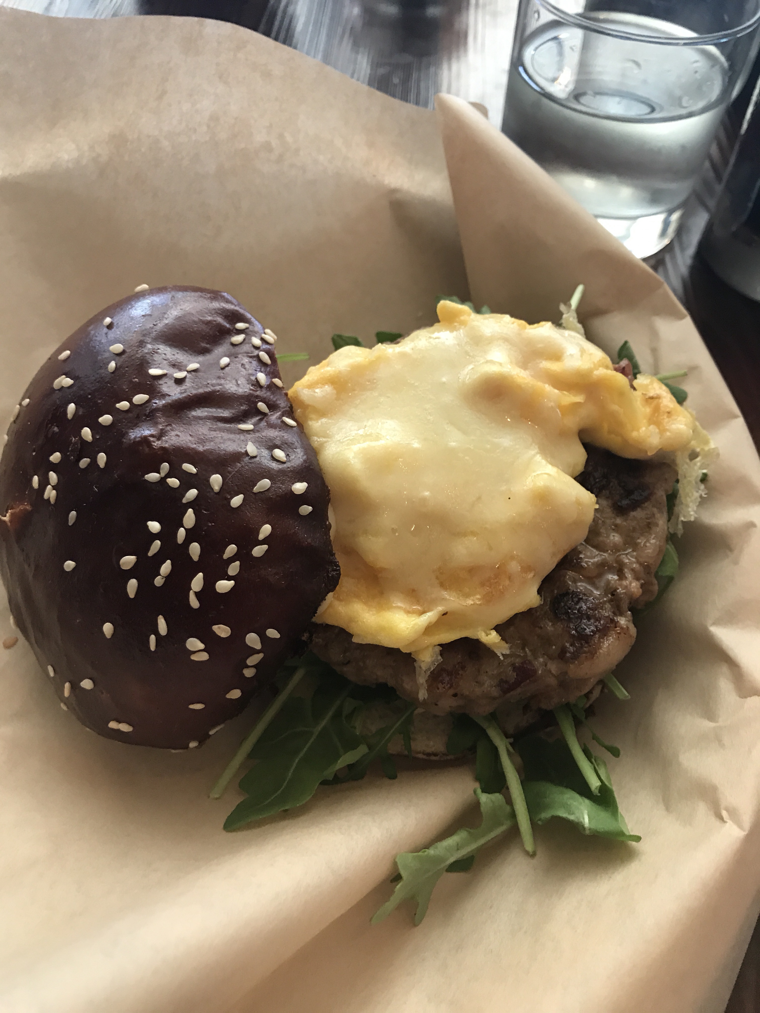 My choice was the nighthawk breakfast sandwich. I find it funny that a breakfast sandwich is a ‘something different’ for me but these days I am obsessed with all the different Mexican styles I see places. It was on a pretzel bun with scrambled egg, gruyere and a bacon/ sausage patty. Man it was good. It was a hard choice but a good one.