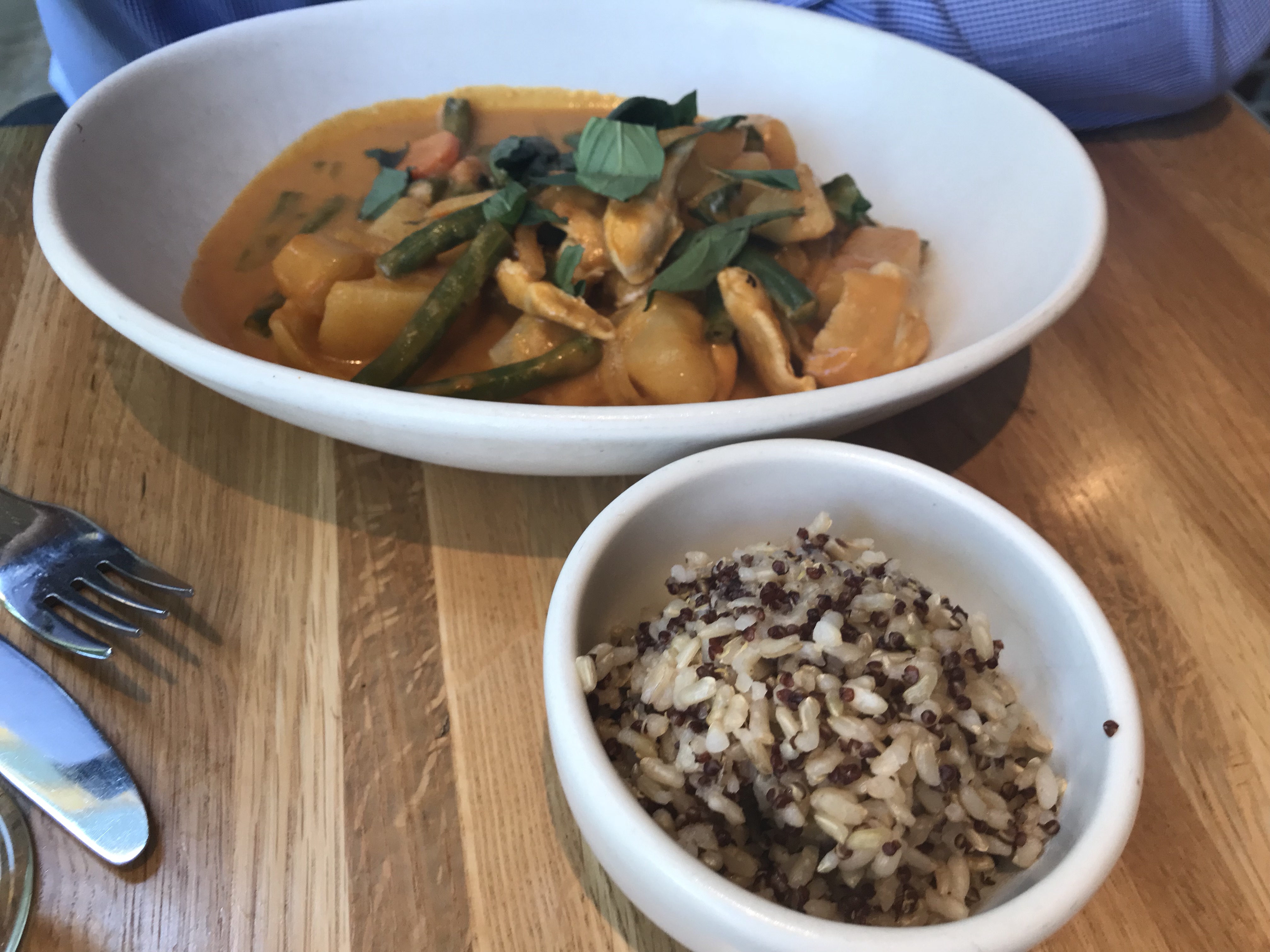 Then came the mains. Al went for a spicy Panang curry with chicken. I only had a little taste of it but the sauce was good. Very silky, I suspect there was some secret vegetables hidden in there.