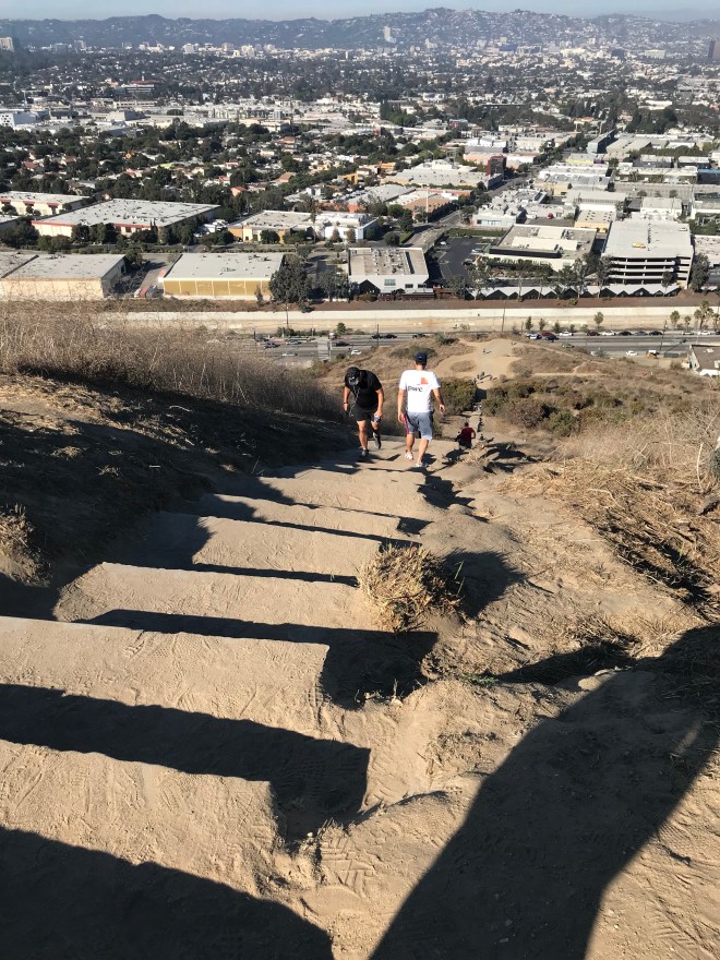 The view from the top is great! You can see across the city (fog & smog dependent of course- it is LA). Once you’v taken it all in and stared incredulously at the people who have come up the stairs and are now having a skipping rope session, it’s time to make your way down. For me this is the pathway, there’s no way in hell I’m doing even stairs down a big hill!