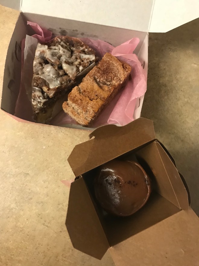 About 3 doors down is another bakery! Who does that? But I still had a sandwich need, so in I went. Yup, you guessed it, also not a sandwich place. And I was in the shop, so, that’s how the bakery off happened. I couldn’t leave without buying something. This bakery was more in the cake realm so I felt justified buying another 3 things.