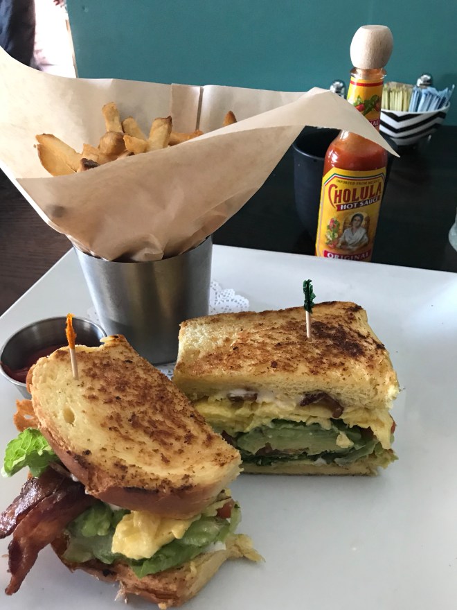 I did try the Challah bread sandwich. Ah-mazing. Like a sandwich made of clouds. It had avocado, egg, bacon and tomato and was everything I needed. I can’t remember if I switched the egg to scramble or if they come that way, but it’s the right choice. Oh yeah, and it comes with fries. I know that shouldn’t be a breakfast thing. Still, yum though. Al was most appreciative of the leftovers.