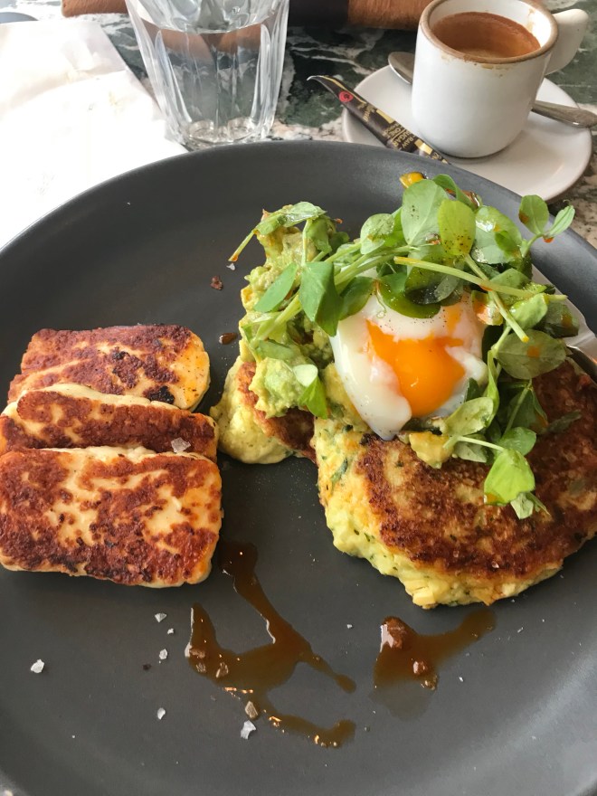 So yup, Great White brought it. I went for something I see as a real quintessential dish: corn fritters, avocado and egg, with a little halloumi added. Delicious! The fritters were perfect, so fluffy. Of course the avo was perfect and the egg so beautifully poached I'm inclined to think it was sous vide instead.