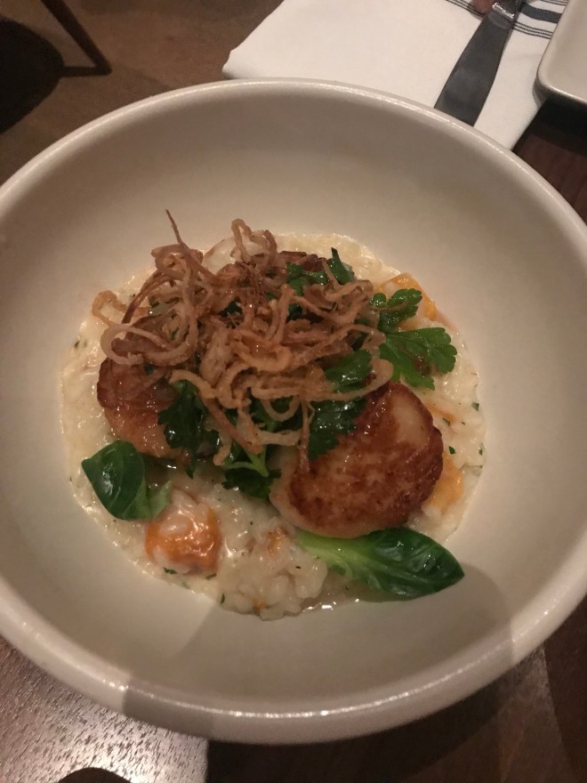 Diver Scallops: nice fat juicy scallops on a bed of parmesan risotto with butternut squash. The menu says there were brussels but I don’t remember them being in there.