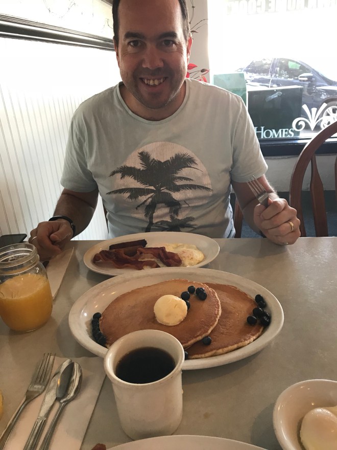Cowgirl Cafe. A good breakfast staples place. We opted for small breakfasts after over doing it the day before and not being able to fit in lunch. As you can see by those pancakes someone, and I’m not pointing any fingers (Al), our small ordering was not too successful.