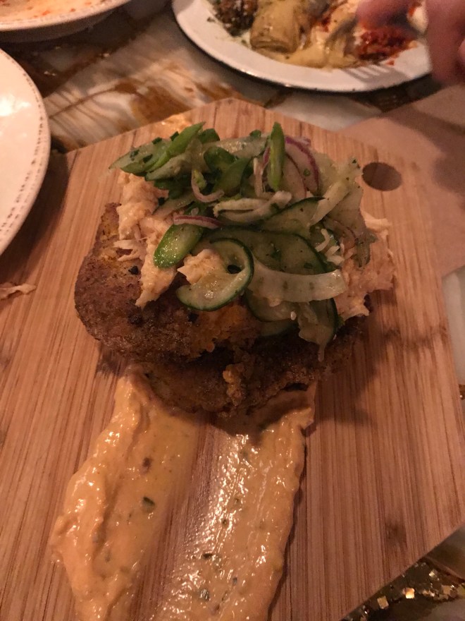 Jumbo ‘crab’ cakes: These were yum, but not for @anshulraja he is not a fan of veggie stuff mimicking animal stuff. I though it was like a big, good potato cake with hidden quinoa. The harissa sauce was my favourite, you just can’t have too much harissa!