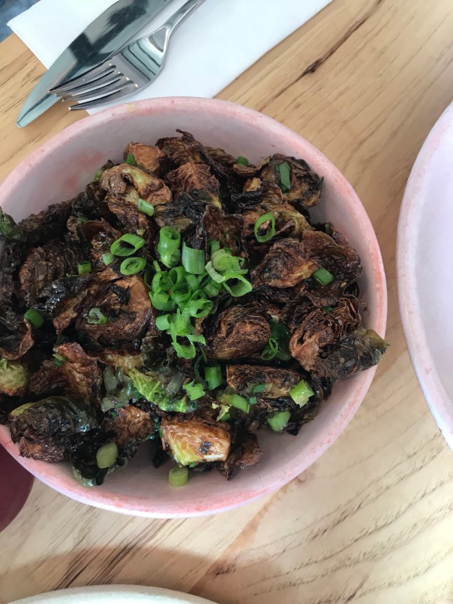 Brussels sprouts: after much discussion over the week about learning that we don’t need to order food for the table, we sat down and ordered food for the table! Though made the decision that it didn’t count as it was veggies. These were delicious. Nicely roasted with some balsamic and other yumminess. It’s a big bowl though so be warned.
