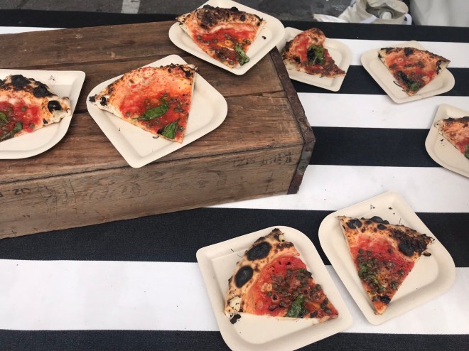 This was a nicely run event: easy check in, branded pizza box to keep my stash of favourites in, a great selection of vendors and tables with benches so you could sit down and feast. Oh and most important of all, good, proper, Italian pizza. Talk about heaven.