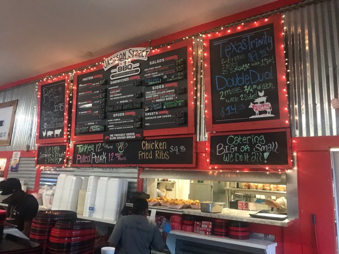 There was no way on earth we were leaving Texas without having some bbq! Turned out to be harder than expected. Majority of Houston was closed for the long weekend which really threw off our plans! After calling around a few different places I found the Jackson Street Bbq, pitches as ‘finally downtown has a decent bbq’.