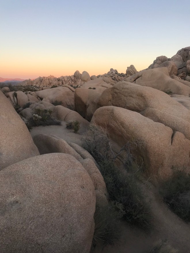 For the sunset, Skull Rock area is a great place to be. You’ll see people scrambling up the rocks for good spots to watch the show. We opted, instead for a short 2 mile Skull Rock loop, I’m really glad we did. The changing colours was phenomenal and often there was no one else around (well, except for the big part when you walk through the campsite).