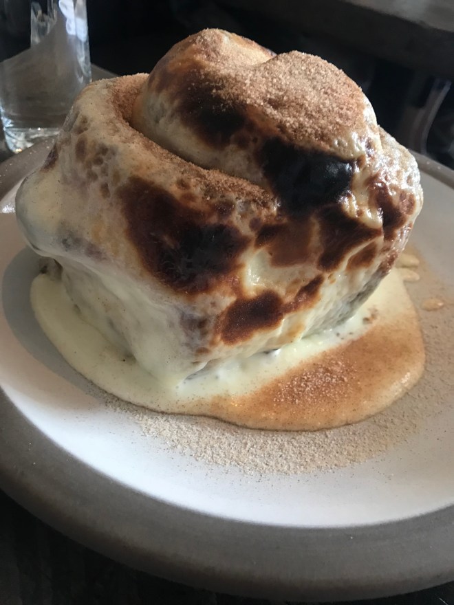 Well the waitress mentioned brioche, sourdough, other baking words, cinnamon sticky buns: I was not going past those! I believe my response was “regardless of what happens here today, I want one of those to take away”. They don’t actually do take away, but they’ll box ‘what you don’t eat’. In reality, you will not be able to resist trying it fresh from the oven. It’ll taste like heaven. The tough part is going to be stopping. But you’ll have to so you can fit in other things. The good news is, it’ll still taste amazing when you’re lying in the couch watching Netflix later.