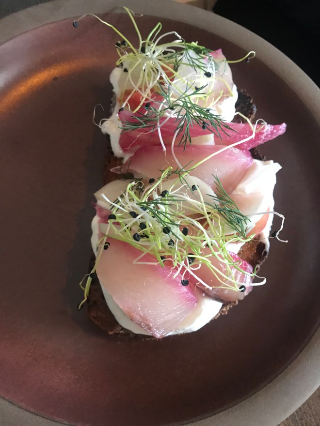 One of the daily specials was a whipped goats cheese and beets on Clark Street bread. Wonderful. You don’t have to fight the bread like you sometime have to and the flavours were all so subtly aligned. It felt really light and I am categorizing it as healthy.