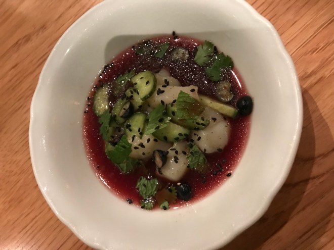 The scallop crudo: this pomegranate sauce with the scallops was perfect. Didn’t over power the scallop, and with the charred cucumber it was really refreshing.