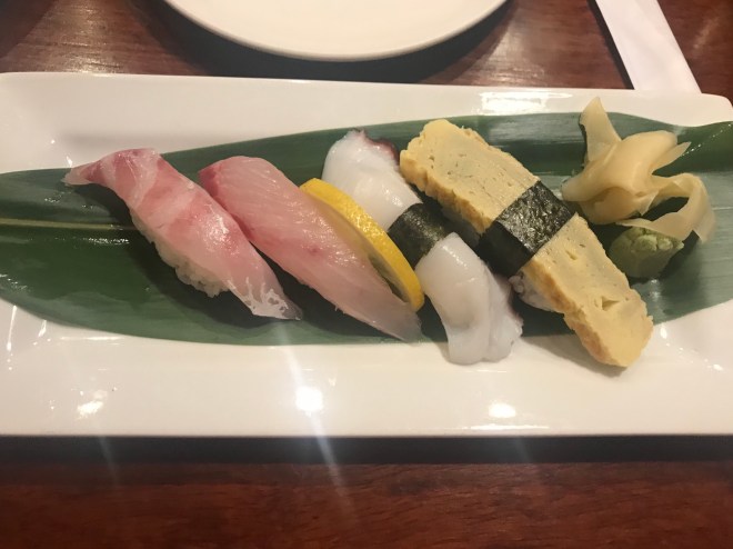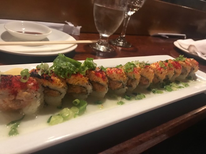 I am a sushi traditionalist at heart, but every now and then push myself to try one of the crazy speciality options. I was honestly so tired by this point I couldn’t tell you exactly what I ordered. But it was spicy and had a citrus accent to it. Interesting. Tasty. A little flavour overwhelming for a traditionalist but nice. Reminded me of some of the combos from Brazil.