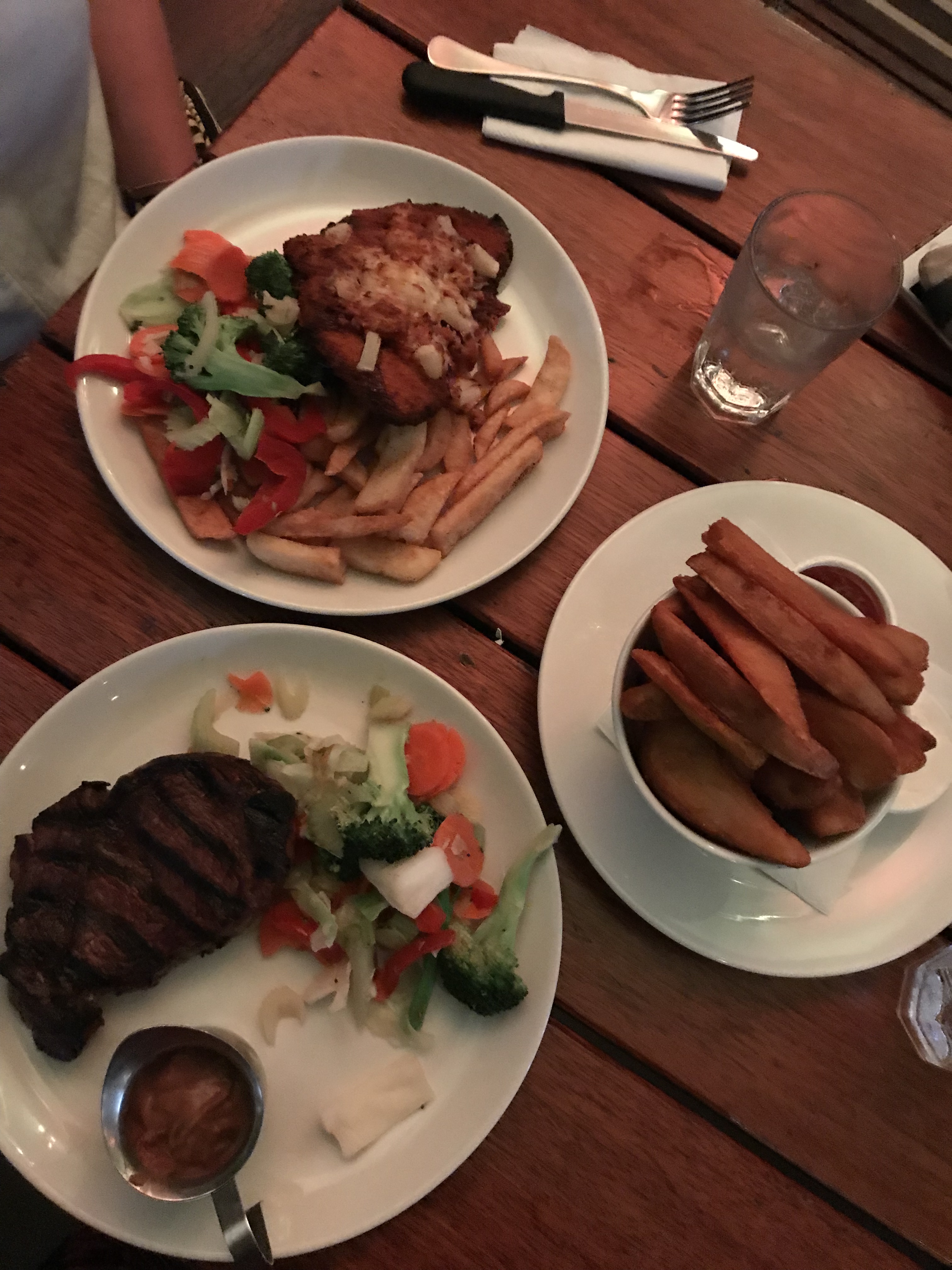 After a day of exploring, a big pub meal is in order. There’s quite a few options in Port Douglas, and by process of elimination we ended up at the Central Hotel. Our process of elimination included: no massive queue, a chicken parmie on the menu and wedges. 😂😂 because as we know, Jax and I were in the thick of an ‘eat all the fried pub food’ phase.